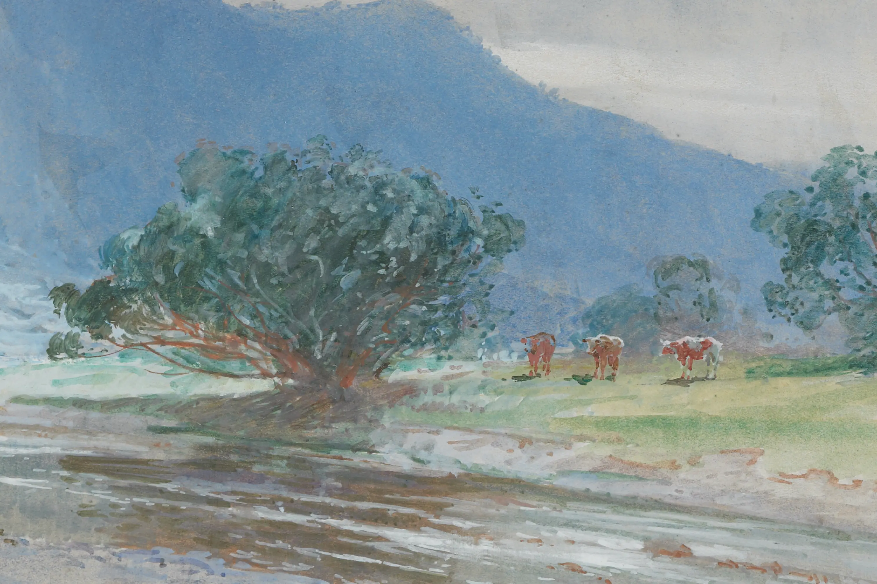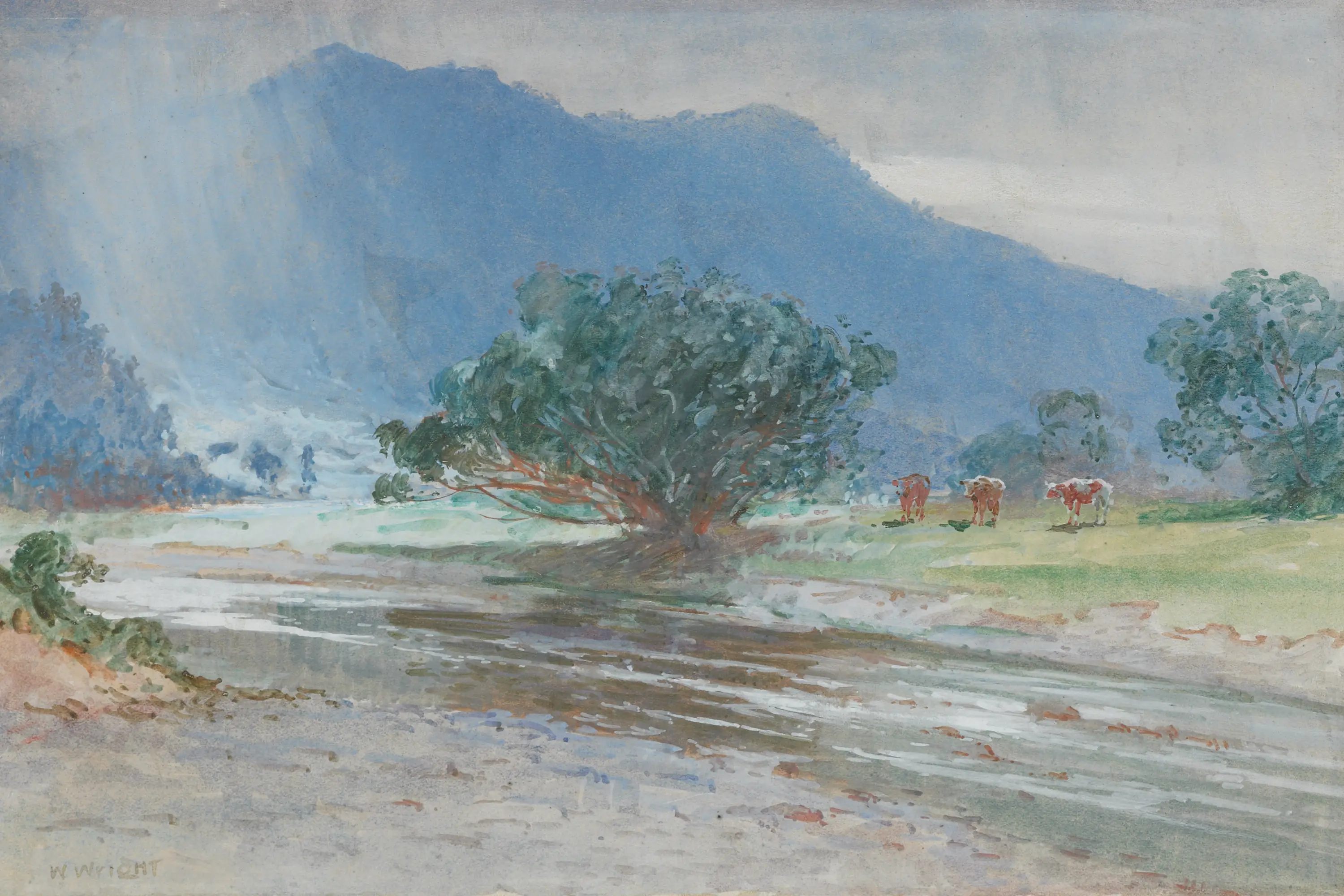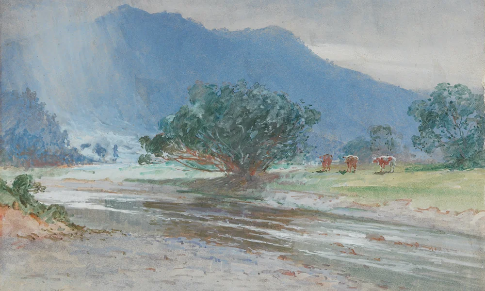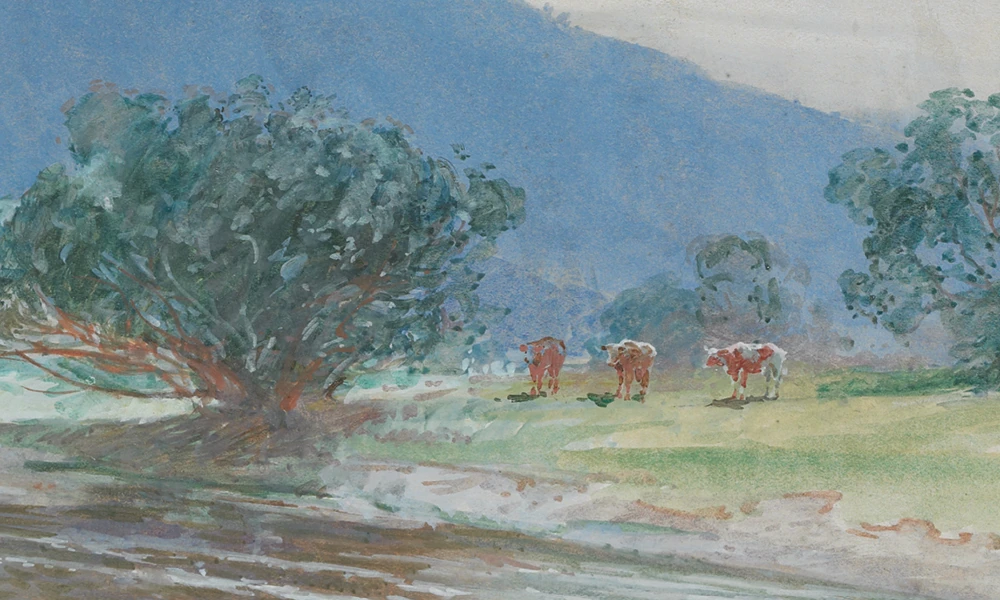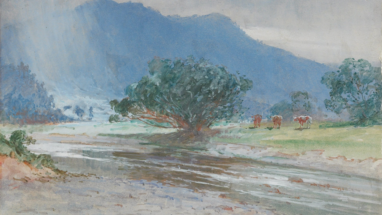 This watercolour painting (most likely painted ‘en plein air’ style out in the open country) was created by Wright during the very last years of Kiingi Tawhiao’s reign.