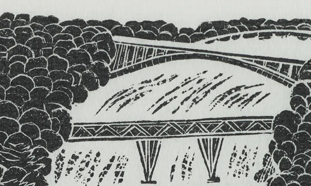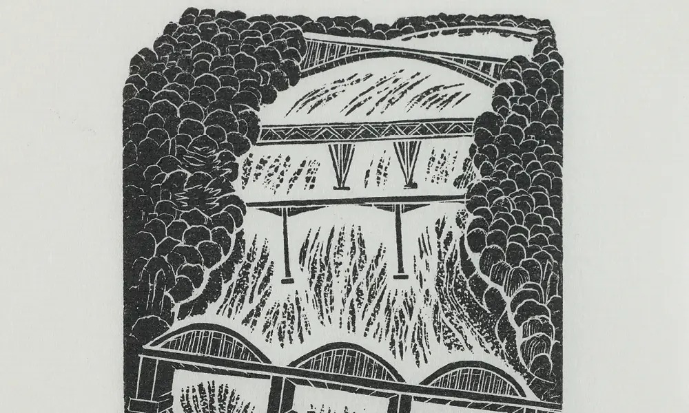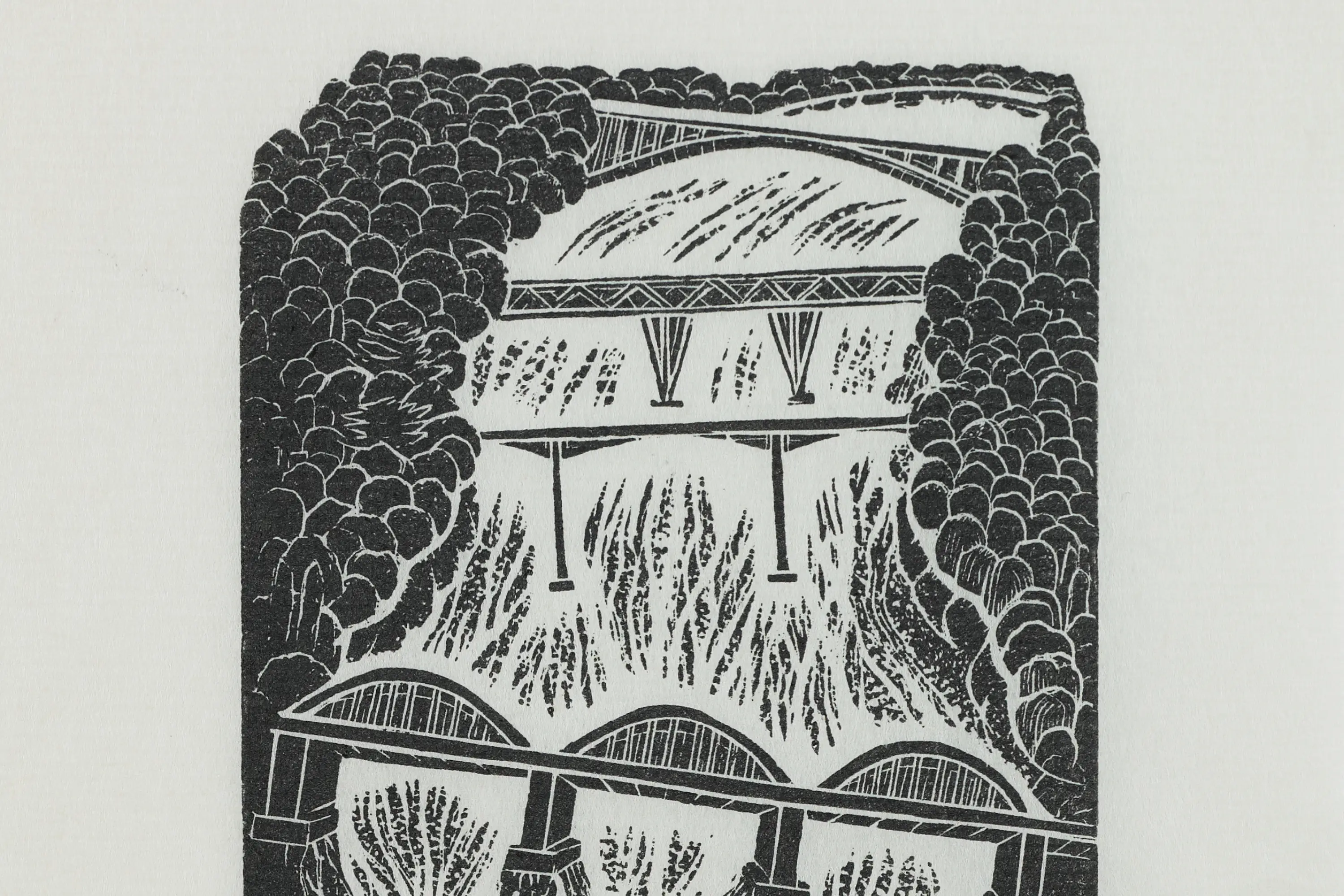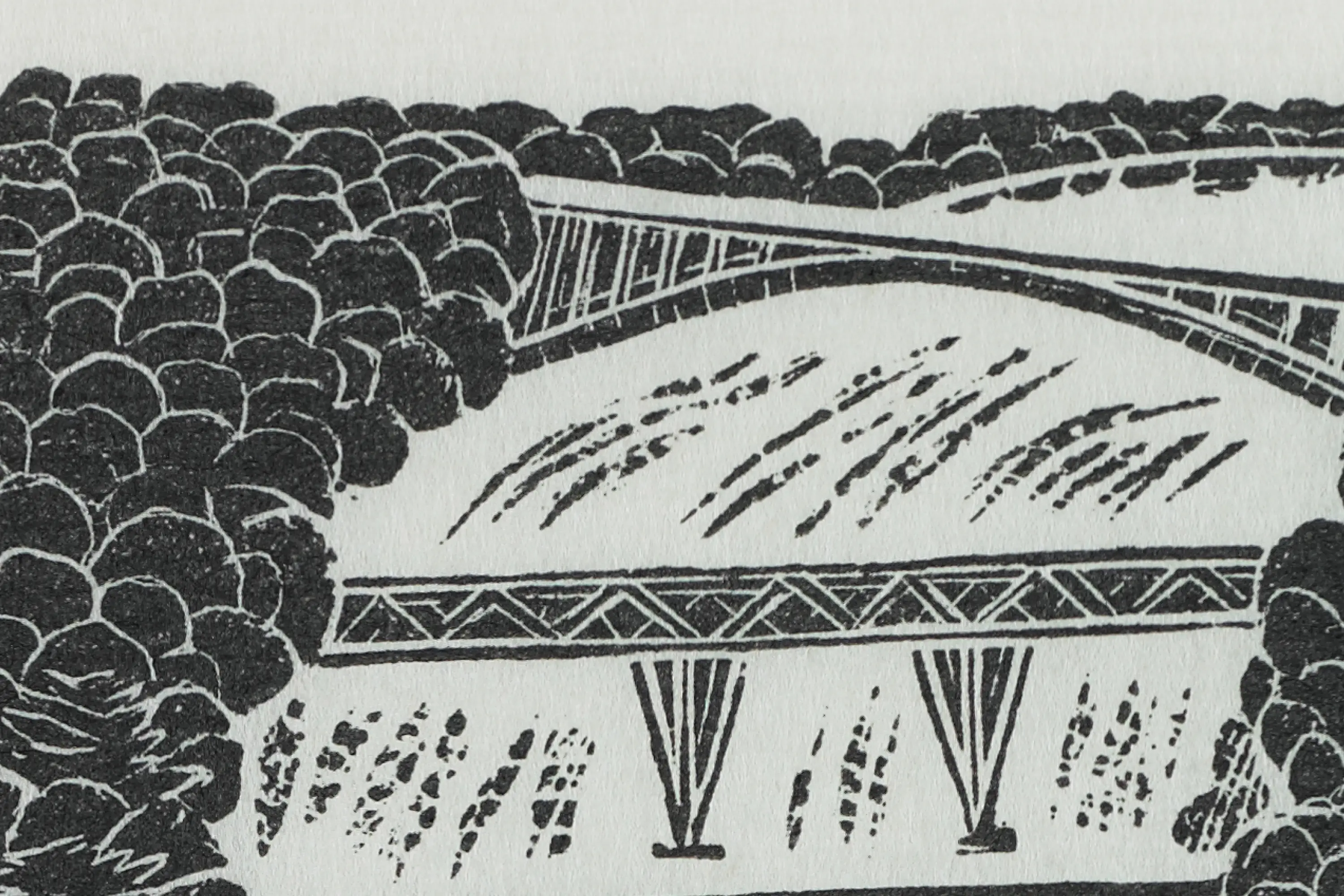 Smith’s juxtaposition of the bridges and the river is a real feature of Hamilton's urban landscape, but also represents the colonial presence, and is a visual reminder of historical change.