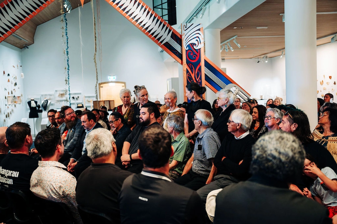 - Opening ceremony, curators and artists with their work, courtesy of Te Whare Taonga o Waikato Museum and Gallery