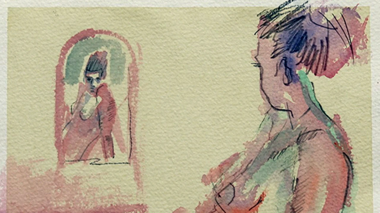 "The piece to me shows self reflection - as many young queer people did, I grew up struggling with self image. Why was I not the same as everyone else? I always stood out as the strange kid, feeling alienated for my strong sense of self and for something else that didn't have a name to it yet."
