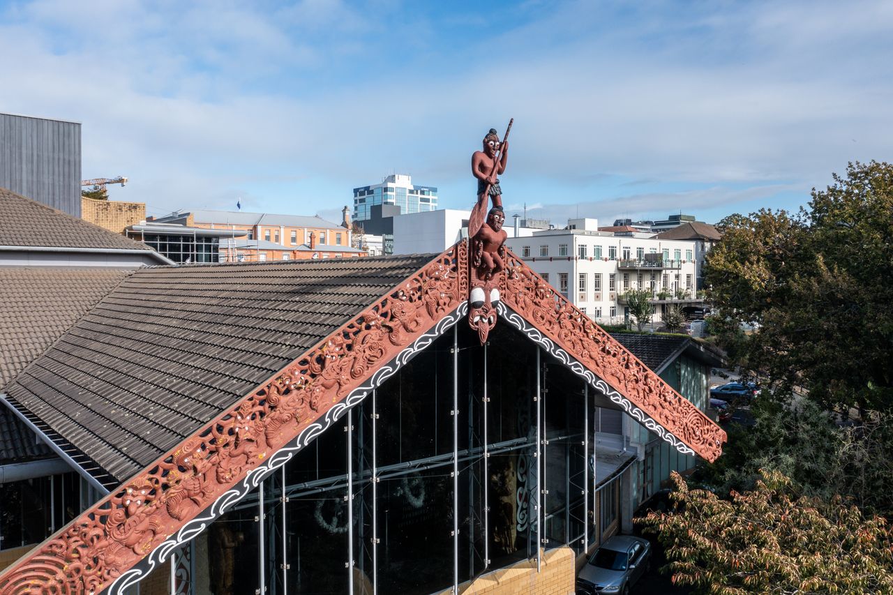 Perched above the Waikato River, the Tekoteko and Maihi carvings stand as proud sentinels on the exterior of the Waikato Museum. These intricate and culturally significant carvings were meticulously crafted by Hopuhopu Carvers specifically for this location. When the new museum was constructed in 1987, these carvings were designed to be a defining feature, embodying the rich heritage and artistic traditions of the region.